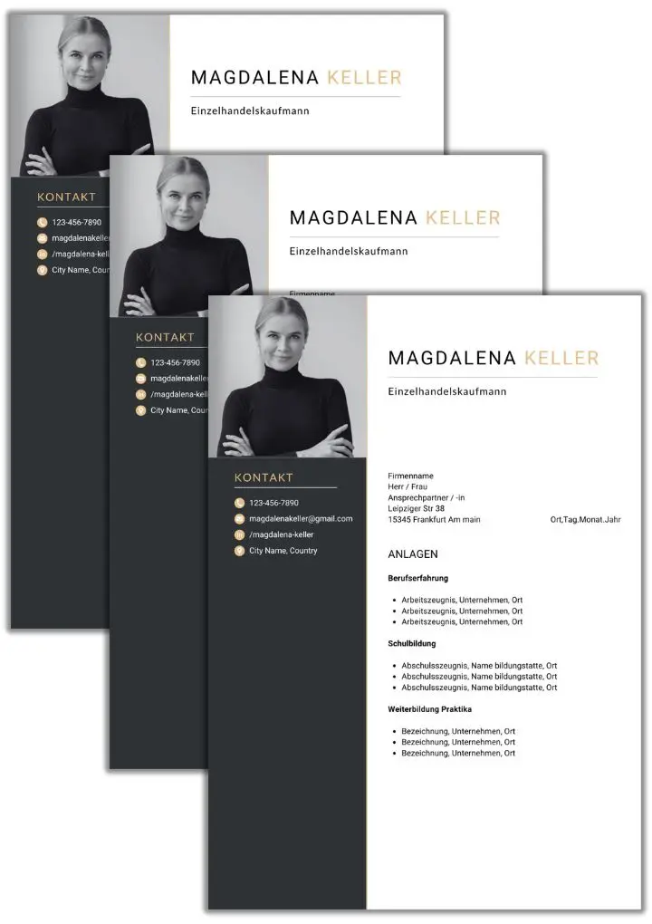 In Deutschland ist es nicht üblich, Referenzen direkt im Lebenslauf zu nennen. Stattdessen kannst du am Ende schreiben: „Referenzen auf Anfrage“. Wenn du bereits Arbeitszeugnisse aus früheren Stellen im Einzelhandel hast, fügst du diese als Anlage bei. Das Bewerbungsset enthält dafür bereits eine vorbereitete Anlagen-Seite.