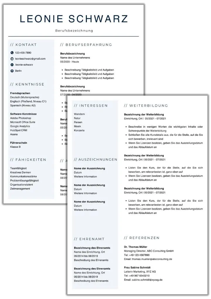 Lebenslauf Canva, Word & PDF Vorlage